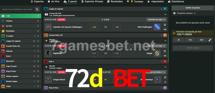 O 72d bet oferece uma grande seleção de opções de apostas em e-sports com probabilidades competitivas